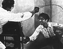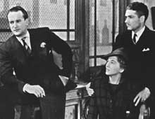 große Diktator Regie: Charles Chaplin USA Darsteller: Charles Chaplin, Paulette Goddard, Jack Oakie Chaplin präsentierte dem US-amerikanischen Publikum eine beissende Satire auf Adolf Hitler und den deutschen Nationalsozialismus. Ein kleiner jüdischer Friseur, der im Fantasiestaat Tomania dem Konzentrationslager entfliehen kann und dem "Tramp" nicht unähnlich ist, wird wegen einer Ähnlichkeit mit dem Diktator Hynkel verwechselt. Chaplin stellt die Figuren seiner Doppelrolle geschickt gegeneinander und läßt den Diktator unkontrolliert zucken und mit einem Globus tanzen. Die etwas aufgesetzt wirkende Rede am Schluß, die der Friseur unversehens halten muß, ist eine Plädoyee für Frieden und Menschenrechte und das erste Mal, daß Chaplin überhaupt in einem seiner Filme spricht. Angesichts des brisanten Themas war die Presseresonanz in den USA vollkommen konträr: Die einen sprechen vom wichtigsten Film überhaupt, die anderen werfen Chaplin Kriegshetze vor. In Chicago wagte aufgrund des hohen Deutschstämmigenanteils kein Kino die Aufführung des Films. Langfristig wurde er aber Chaplins erfolgreichstes Projekt. |