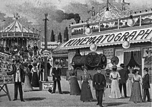 ![]() Das Kino müßte eigentlich "der Kino" heißen, denn das Wort ist eigentlich eine Abkürzung von "der Kinematograph". Kinos, als feste Einrichtungen in Gebäuden, gab es in Deutschland erst nach dem ersten Weltkrieg. Die ersten Filme, die noch als vorübergehende Kuriosität angesehen wurden, zeigten Schausteller mit tragbaren Kinematographen in bunt dekorierten Jahrmarktbuden und gelegentlich auch in Varietés, wo sie einen Teil des Programms bildeten. Eine weitere Vorführform war das, neuerdings wieder beliebte, Freilichtkino, das abends auf Dorfplätzen oder in Wirtshausgärten installiert wurde, eine Hauskapelle sorgte live für die musikalische Untermalung. Besonders in den Großstädten, wie Berlin erlebte das Kino in den 20er Jahren, trotz der allgemein äußerst schlechten Wirtschaftslage mit der Hyperinflation, einen ungeheuren wirtschaftlichen Aufschwung, denn der Eintritt war sehr billig und so insbesondere für die unteren Schichten erschwinglich. So war z.B. oftmals der Kinosaal für die zahlreichen Dienstmädchen der damaligen Zeit der einzige Platz, wo sie sich auf unverdächtige Weise mit einem Mann treffen konnten. Es galt als besonders schick ins "Kientopp" zu gehen. Um den Kunstanspruch dieser Häuser möglichst augenfällig zu machen, richtete man diese sogenannten "Lichtsspieltheater" weitgehend genau nach dem Vorbild echter Theater, mit Logen, Rängen usw. ein. Platzbezeichnungen, die heute noch gebräuchlich sind, obwohl sie ihre Berechtigung verloren haben. Auch die riesigen Bühnenvorhänge, die sich oftmals noch bei Beginn der Vorstellung öffnen, sind eine Folge dieses Phänomens. Filmarchitekten wie Hans Poelzig und Fritz Wilms widmeten sich speziell den neuen Ansprüchen des Mediums und es entstanden Filmpaläste wie das Orpheum in Berlin oder der Münchner Phöbus Palast mit mehr als 2 000 Sitzplätzen. Das Universum-Lichtspielhaus in Berlin ist ein weiteres Beispiel der innovativen Tendenzen in der Kinoarchitektur. Der Bau hat einen eiförmigen Grundriß und bietet den Zuschauern optimale visuelle Bedingungen. Es entstand nach Plänen von Erich Mendelsohn 1926-28. Die Einführung des Tonfilms 1927 brachte aber oftmals erhebliche akustische Probleme und führte in den 30er Jahren zu einem konsequenten Funktionalismus bei Kinoneubauten. In den 50er Jahren wurde die Konkurrenz des Fernsehens für die Kinobetreiber immer mehr spürbar und viele Häuser mußten schließen. Es war allgemein vom "Kinosterben" die Rede. Um die Attraktivität dennoch zu steigern, kam es zu Experimenten der Produktionsfirmen wie z. B. den 3D-Filmen und nicht zuletzt anfang der 60er Jahre zur Entwicklung der Breitwandverfahren wie CinemaScope, Cinerama und Panavision. Dies führte wiederum dazu daß, die Gebäude sich erneut den technischen Anforderungen anpassen mußten. In den USA florierten damals die neuartigen Autokinos, in denen eine beträchtliche Anzahl von Autos, aufgereiht vor einer riesigen gekrümmten Leinwand parkten. Mit separaten, jeden Wagen einzeln beschallenden, Lautsprechern, um wurden die Autos mit dem Ton versorgt. Doch der immer grösser werdende Besucherrückgang Ende der 60er Jahre zwang zu Verkleinerungen der großen Häuser, Balkone wurden abgetrennt, große Säle längsgeteilt, um den verschiedensten Publikumsinteressen gerecht zu werden. Eine Folge des Kinosterbens der damaligen Zeit war auch, die meist auf Privatinitiativen zurückgehende Gründung von Filmclubs, subventionierte, kommunale Kinos und Programmkinos, die oftmals nur mit 16 mm-Projektoren ausgestattet, versuchten, ein anspruchsvolles Filmprogramm zu bieten und die, durch die Vernachlässigung der Verleiher des ambitionierten Film enstandenen Lücken der Filmversorgung, zu schließen. Mit einer Spielfrequenz von einmal täglich bis einmal wöchentlich zeigen sie seitdem Programme, die sich vor allem von den Normalkinos dadurch unterscheiden, daß sie nicht aus starren Verleihverträgen resultieren, sondern nach individuellen Kriterien zusammengestellt werden. Die offensichtliche Erfolg einiger Programmkinos hat bereits die ersten Rückwirkungen auf die kommerziellen Kinos gezeigt. Auch sie versuchen mittlerweile sich den erhöhten künstlerischen Ansprüchen des Kinopublikums bei ihren Verleihverträgen anzupasssen. In den letzten Jahren