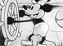 Willie Steamboat Willie Regie: Walt Disney USA Disneys dritter Film mit Mickey-Maus, aber sein erster vertonter Trickfilm. Der Ton wird aber weniger für Dialoge als für eine perfekt auf die Handlung zugeschnittene musikalische Unterlegung genutzt. Die visuellen Gags, Musik und Geräusche verschmelzen zu einem harmonischen Ganzen. Für den mit enormem Arbeitsaufwand entstandene Zeichentrickfilm sind mehrere tausend Einzelzeichnungen nötig, was die frühen Trickfilme auf eine Länge von 10 bis 15 Minuten beschränkte. Die berühmteste Szene zeigt Mickey und Minnie wie sie Tiere als Musikinstrumente benutzen, Mickey spielt auf dem Schwanz einer Katze wie auf einer Geige. |