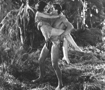 der Affenmensch Regie: Woodbridge Strong van Dyke USA Darsteller: Johnny Weissmuller, Maureen O´Hara, Neil Hamilton Der mehrfache Olympiasieger im Schwimmen Johnny Weissmuller spielte erstmals seine Paraderolle. Viel Sprachvermögen verlangte der Tonfilm nicht vom zivilisierten Wilden: "Ich Tarzan, du Jane". Bis 1948 spielte Weissmuller in elf weiteren Filmen, die mit der Romanvorlage von Edgar Rice Burroughs oft nicht mehr viel zu tun hatten, aber durch den Erfolg ein eigenes Genre begründeten. Spätere Tarzan-Darsteller waren Lex Barker, Gordon Scott und Ron Ely. |