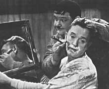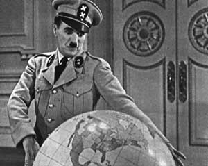große Diktator Regie: Charles Chaplin USA Darsteller: Charles Chaplin, Paulette Goddard, Jack Oakie Chaplin präsentierte dem US-amerikanischen Publikum eine beissende Satire auf Adolf Hitler und den deutschen Nationalsozialismus. Ein kleiner jüdischer Friseur, der im Fantasiestaat Tomania dem Konzentrationslager entfliehen kann und dem "Tramp" nicht unähnlich ist, wird wegen einer Ähnlichkeit mit dem Diktator Hynkel verwechselt. Chaplin stellt die Figuren seiner Doppelrolle geschickt gegeneinander und läßt den Diktator unkontrolliert zucken und mit einem Globus tanzen. Die etwas aufgesetzt wirkende Rede am Schluß, die der Friseur unversehens halten muß, ist eine Plädoyee für Frieden und Menschenrechte und das erste Mal, daß Chaplin überhaupt in einem seiner Filme spricht. Angesichts des brisanten Themas war die Presseresonanz in den USA vollkommen konträr: Die einen sprechen vom wichtigsten Film überhaupt, die anderen werfen Chaplin Kriegshetze vor. In Chicago wagte aufgrund des hohen Deutschstämmigenanteils kein Kino die Aufführung des Films. Langfristig wurde er aber Chaplins erfolgreichstes Projekt. |