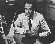 zwölf Geschworenen 12 Angry Men Regie: Sidney Lumet USA Darsteller: Henry Fonda, Lee J. Cobb, Jack Warden Eine zurückhaltende Inszenierung, die fast ausschließlich in einer Dekoration spielt, trotzdem kommt nie Langeweile auf, denn die Szenen wurden von Regie und Kamera geschickt aufgelöst. Bis auf einen der zwölf Geschworenen sind alle davon überzeugt, daß der angeklagte Junge schuldig ist, seinen Vater ermordet zu haben. Geduldig argumentiert er zugunsten des Angeklagten, bis sich auch bei den anderen Zweifel an der Richtigkeit des vorgefaßten Urteils breitmachen. Lumet schuf mit seinem Regiedebut ein eher stilles Meisterwerk, das in Berlin mit dem Goldenen Bär als bester Film preisgekrönt wurde. |