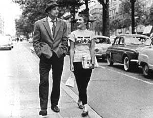 Atem A bout de souffle Regie: Jean-Luc Godard Frankreich Darsteller: Jean-Paul Belmondo, Jean Seberg Ein wegen Polizistenmordes gesuchter, junger Autodieb hat eine Beziehung zu einer amerikanischen Studentin in Paris, er flüchtet zu ihr, aber sie verrät ihn und er wird von der Polizei erschossen. Der frühere Filmkritiker Godard bricht mit sämtlichen Regeln der traditionellen Filmgestaltung, Achsensprünge, abrupte Bild- und Tonschnitte nimmt er bewußt in Kauf, auch daß in den Strassenszenen das Filmteam neugierig beobachtende Passanten zu sehen sind stört ihn wenig. Mit seiner Rückkehr zu Unmittelbarkeit und Direktheit des Films leitete Godard die französische 'Nouvelle Vague' ein. Godard gewann damit den Preis für Regie in Berlin. |