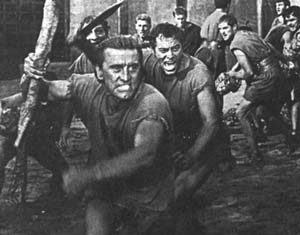 Spartacus Regie: Stanley Kubrick USA Der Kampf des Sklaven und Gladiatoren Spatacus, der zum Anführer einer Rebellion gegen die römische Übermacht wird, bildet den Höhepunkt einer ganzen Welle von Antik-Epen auf der Leinwand. Nicht nur den Massenszenen und der verschwenderischen Fülle von Kostümen und Requisiten verdankt der Film seinen weltweit enormen Kassenerfolg, sondern auch dem Aufgebot von Stars: Kirk Douglas, Tony Curtis, Laurence Olivier, Jean Simmons, Charles Laughton und Peter Ustinov, in einer amüsanten Nebenrolle, für die er einen Oscar erhielt. |